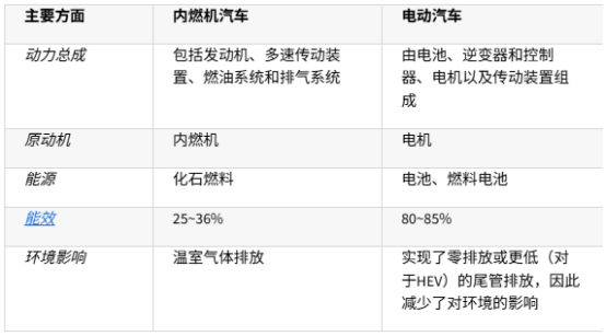 为了便于对比,以下列出了内燃机汽车和电动汽车动力总成的主要区别: