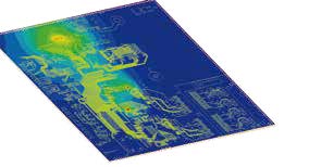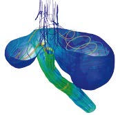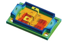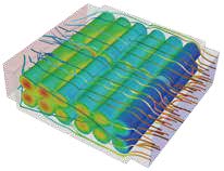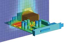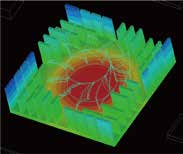 模拟了带风扇散热器的温度分布。计算时使用MRF 模型模拟真实风扇的旋转造成的复杂气流